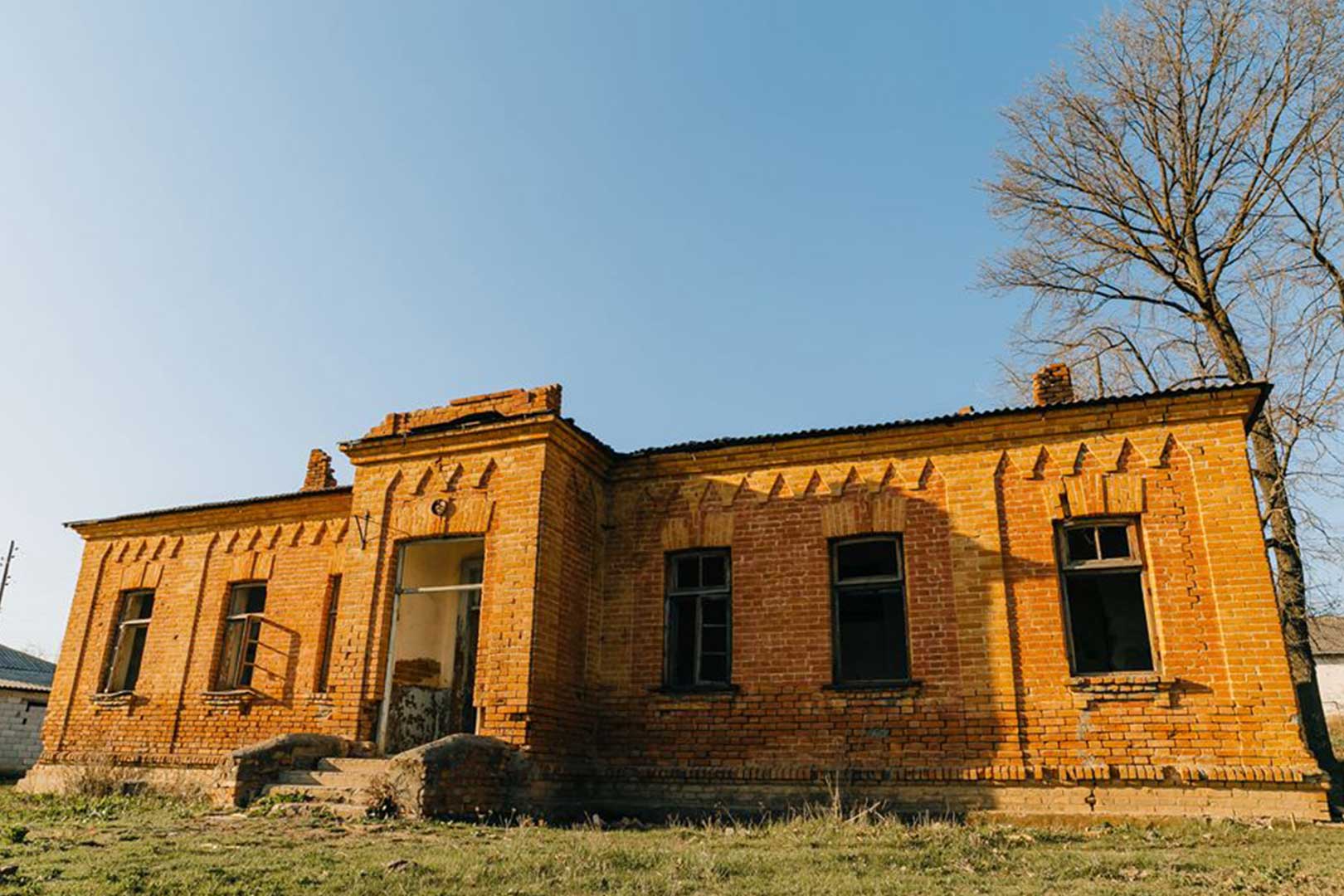 Clădirea din cărămidă roșie a fostei școli primare